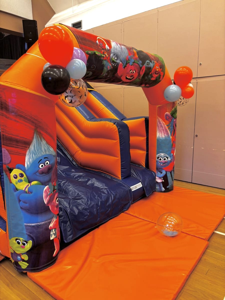 At 12ft wide x 12ft long x 8.1ft high, the Trolls JNR Slide is ideal for indoor hires across Bromley, Bexley, Croydon, Coulsdon, Oxted and Edenbridge. For the full list of towns covered, see our Delivery Areas.