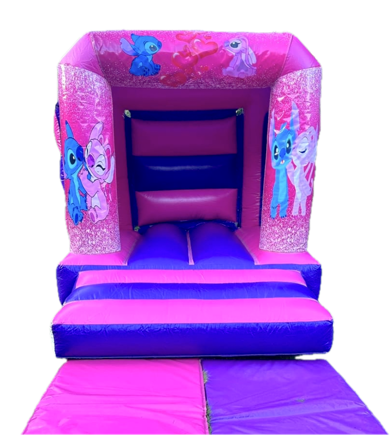The castle features fun Stitch & Angel artwork, making it an ideal option for fans of the Lilo & Stitch series. For more themed inflatables, see our Lilo & Stitch Hire.