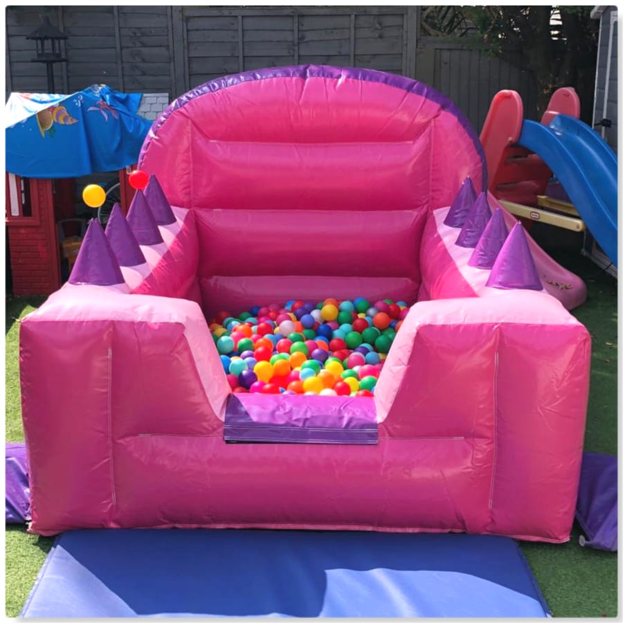 For a harmonious look, our Pink and Purple Ball Pond Air Juggler complements our Fairy Tale Soft Play colours, ensuring that your party decorations are picture-perfect.