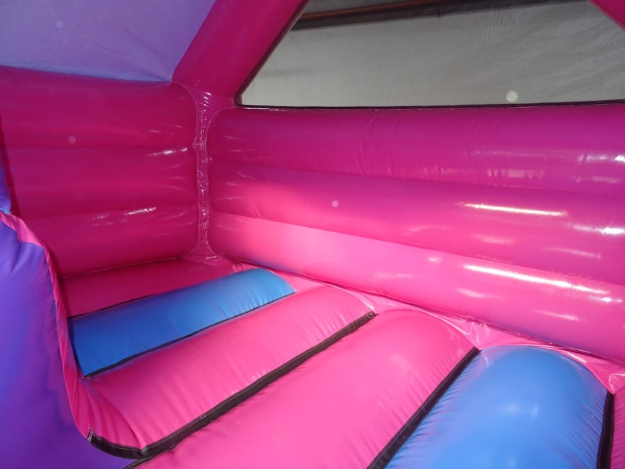 Make your child’s celebration a vibrant adventure with our Pink Blue Purple Bounce & Slide Bouncy Castle. Check availability now and book online to avoid disappointment!