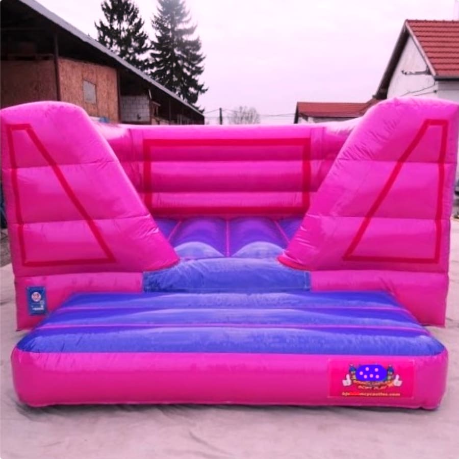 Add a touch of charm to your child's next event with our V Shape kids pink bouncy castle! Designed with low ceilings in mind, this castle is perfect for indoor use, fitting seamlessly into halls or homes.
