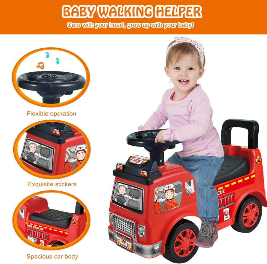 Looking for a thrilling and engaging toy for your little one in Delivery Areas. Our Fire Engine Ride On Car is the perfect choice! This push-powered ride on is designed for kids aged 19-36 months, offering indoor and outdoor fun with sound effects to enhance the experience.