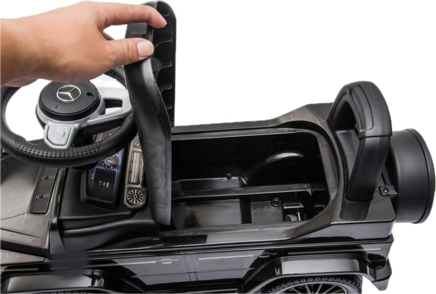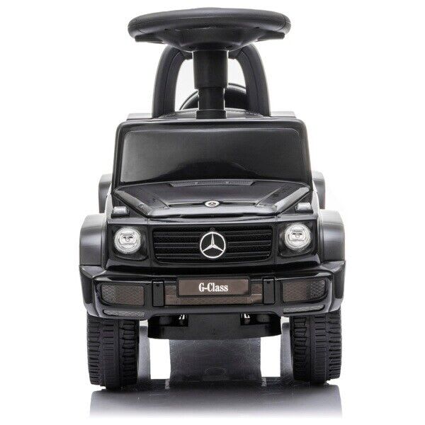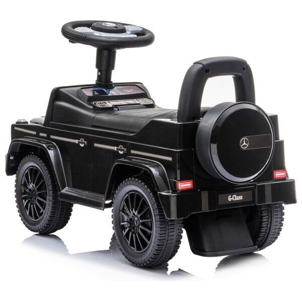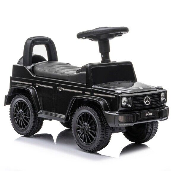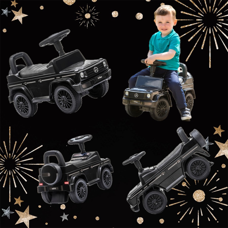 The Mercedes Benz G350d Ride On toy cars are designed with a high backrest to keep kids supported as they push themselves along. 🚀 The detailed dashboard allows little ones to imagine they're driving their very own car. Lift the seat to reveal a convenient storage compartment, ideal for taking toys on a spin! 🎉