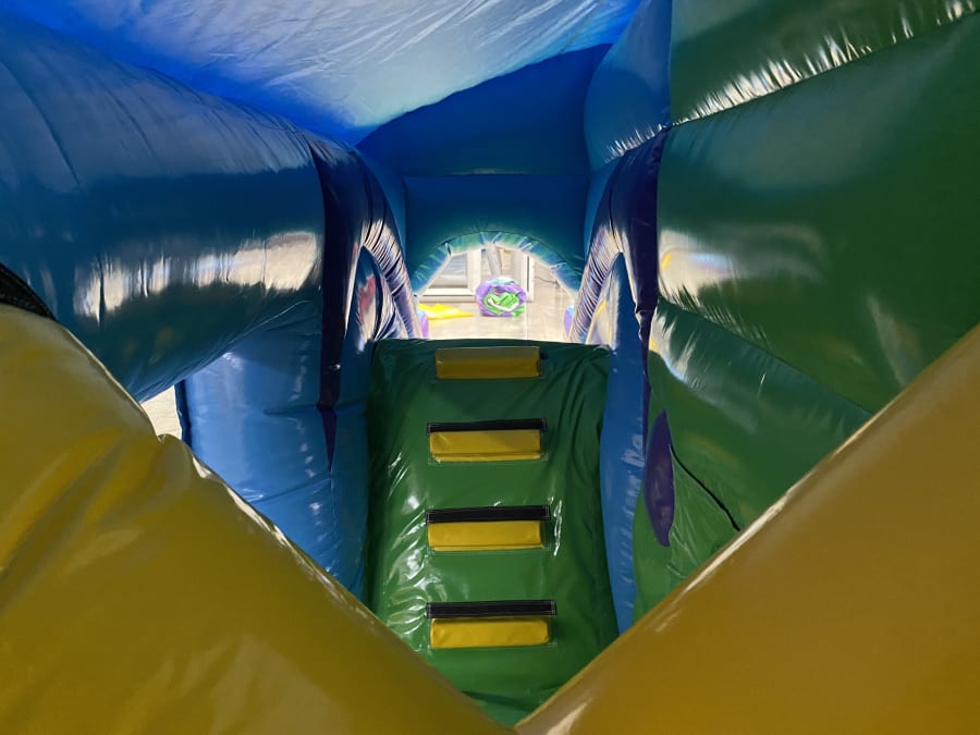 Obstacle jump & slide all in one activity fun bouncy castle with slide for hire