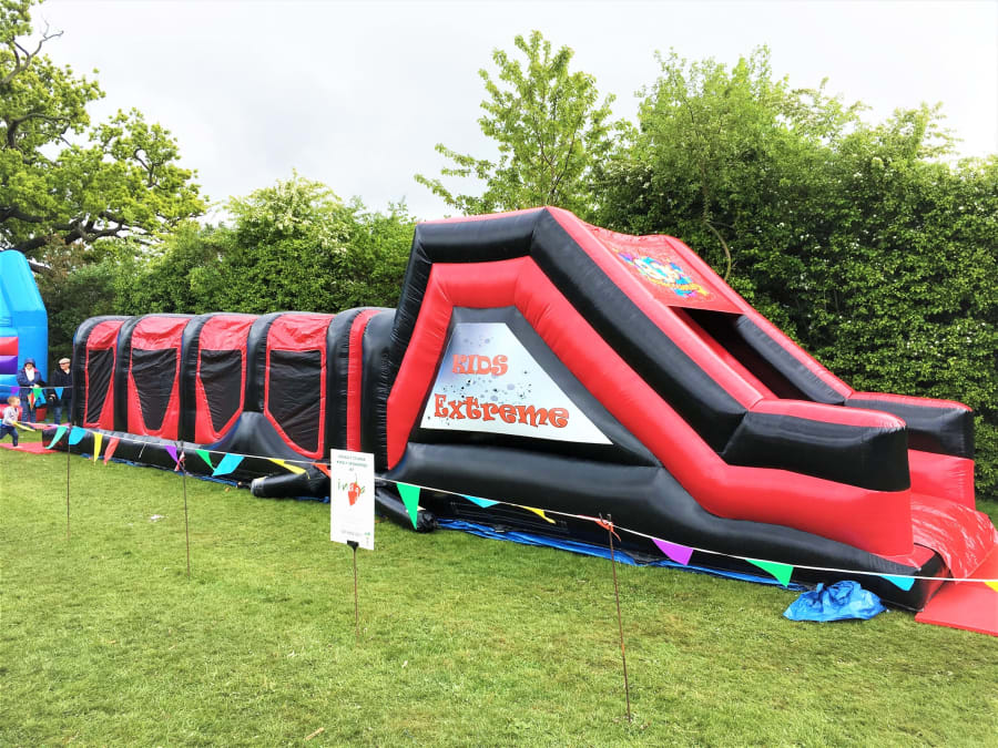 Family assault course fun with a slide for hire