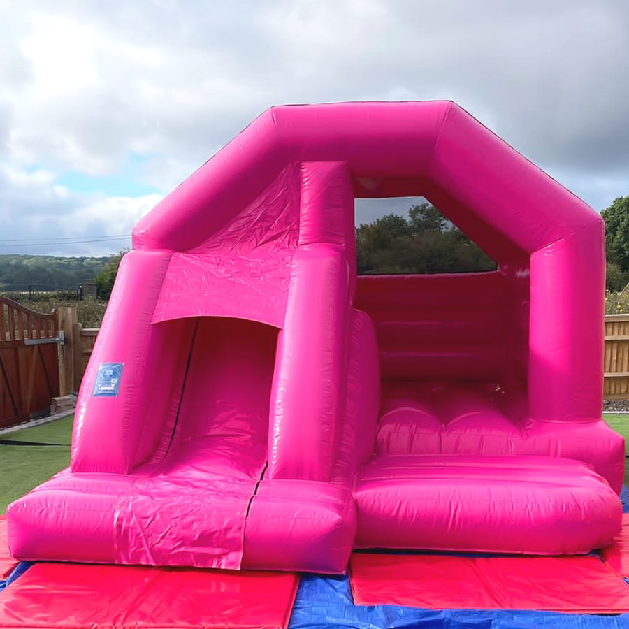 Our Pastel Range Fuchsia Bounce & Slide Bouncy Castle is a vibrant, neutral-themed inflatable perfect for children's parties.