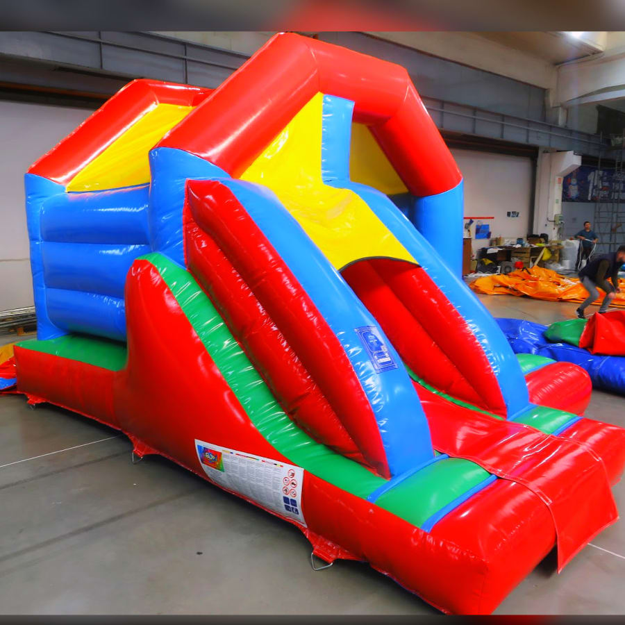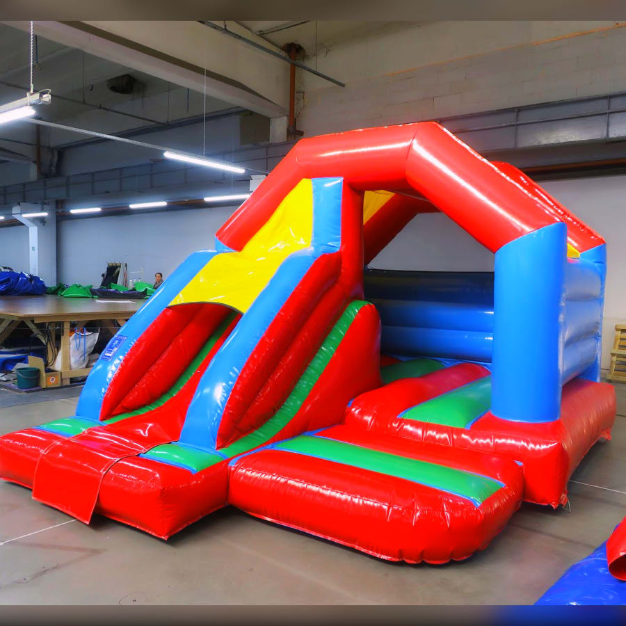 When setting up, we provide an electric blower, extension lead, and all necessary safety equipment, including pegs for outdoor setups or sandbags for indoor use. Additionally, one safety mat is supplied free of charge.