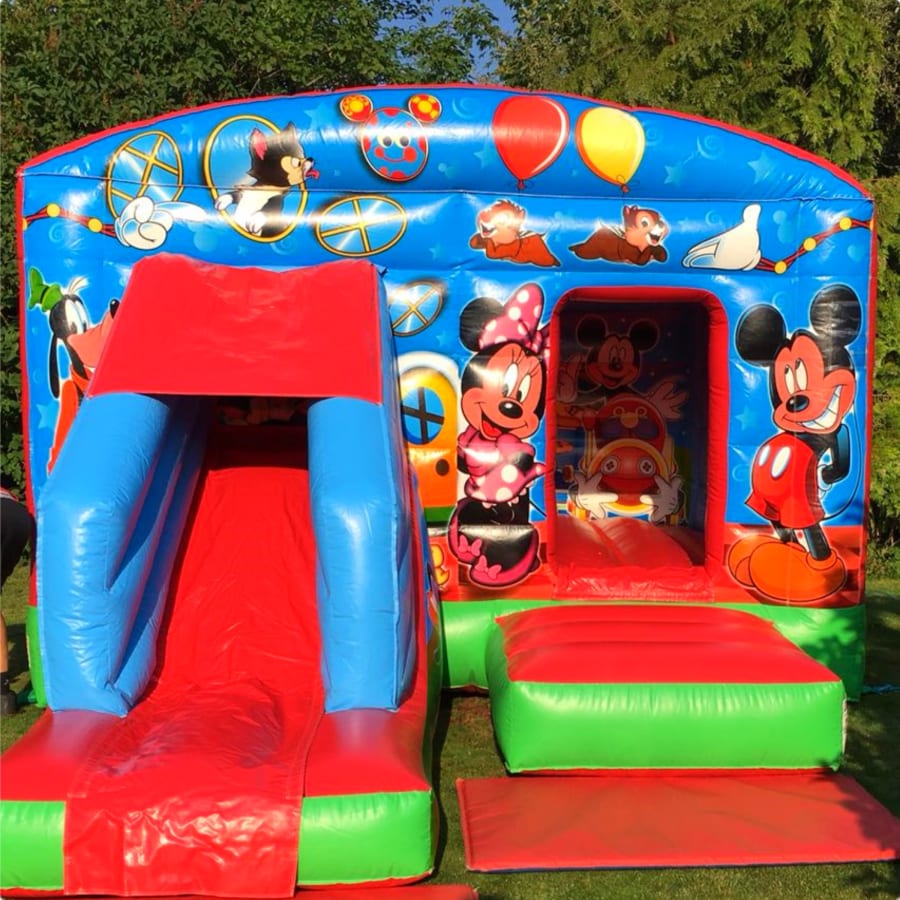 Embark on a delightful adventure with our Mickey & Minnie Deluxe Bounce & Slide Bouncy Castle, perfectly suited for youngsters under 10 years old.