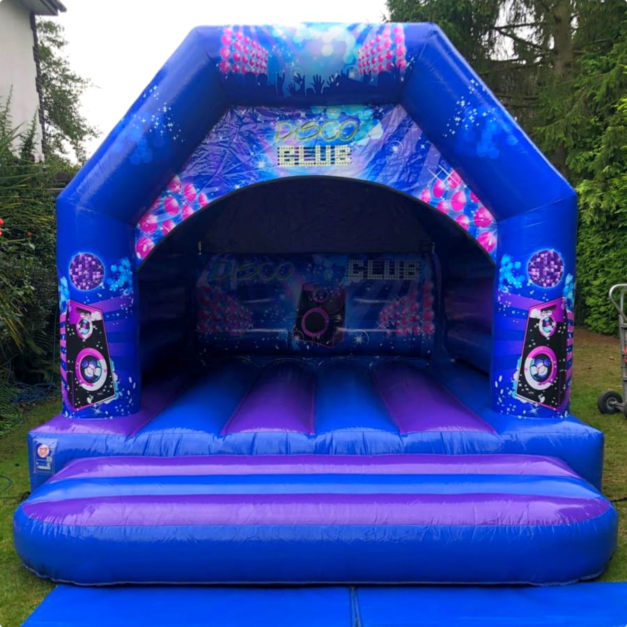 Kids disco bouncy castle hire with PA speaker & flashing disco lights