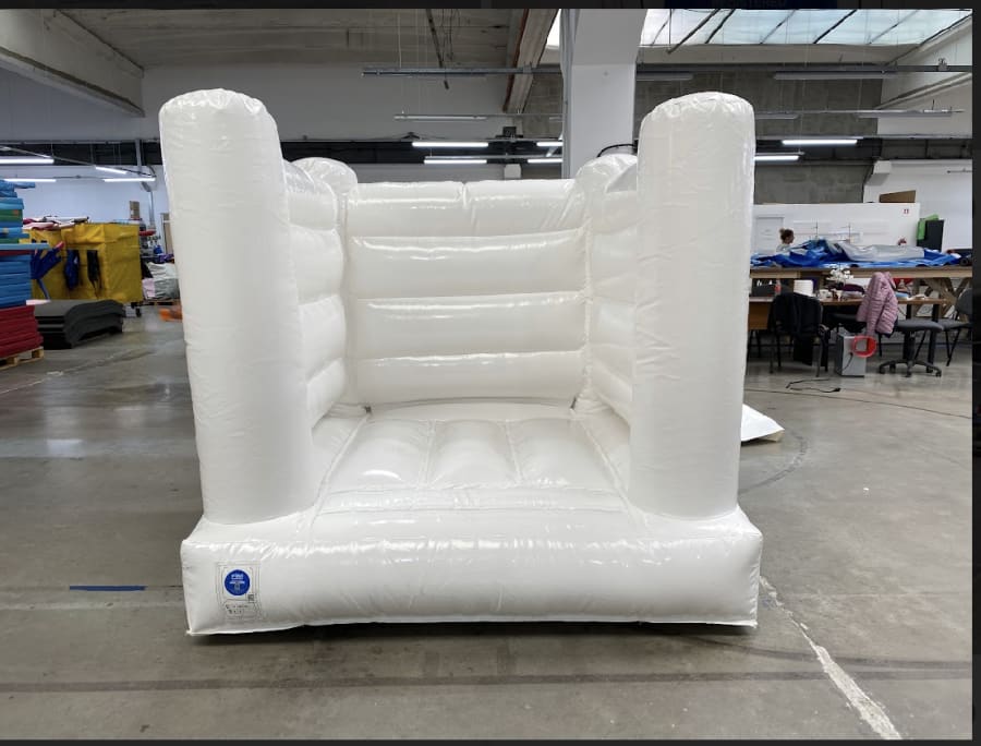 In response to the high demand for smaller bouncy castles that fit within home environments, we have developed this micro bouncy castle. It's available in a variety of appealing colours, including candy pink & purple and red & blue, as well as our elegant pastel range. This particular model, the pastel white micro bouncy castle, is bespoke designed for indoor use, featuring strong safety walls for excellent visibility.