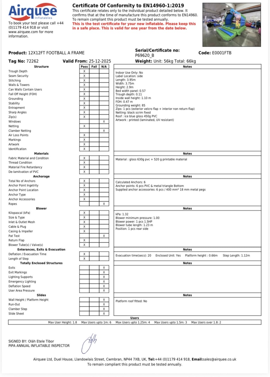 Perfect for birthdays, community football events, school fêtes, and family gatherings. Spacious design and robust build keep kids active and parents relaxed. Book fast to secure your date. ⚽️