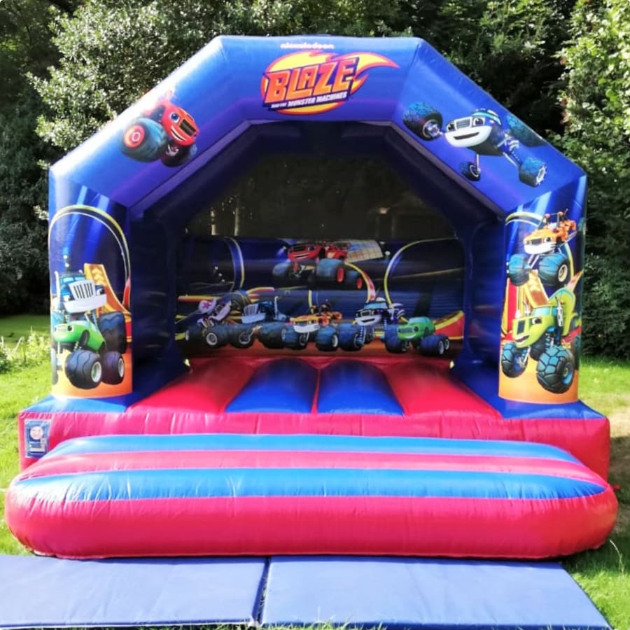 Get ready for an action-packed adventure with our Blaze Deluxe Bouncy Castle! This fantastic bouncy castle features the popular Blaze monster trucks and cars, designed and approved by Nickelodeon.