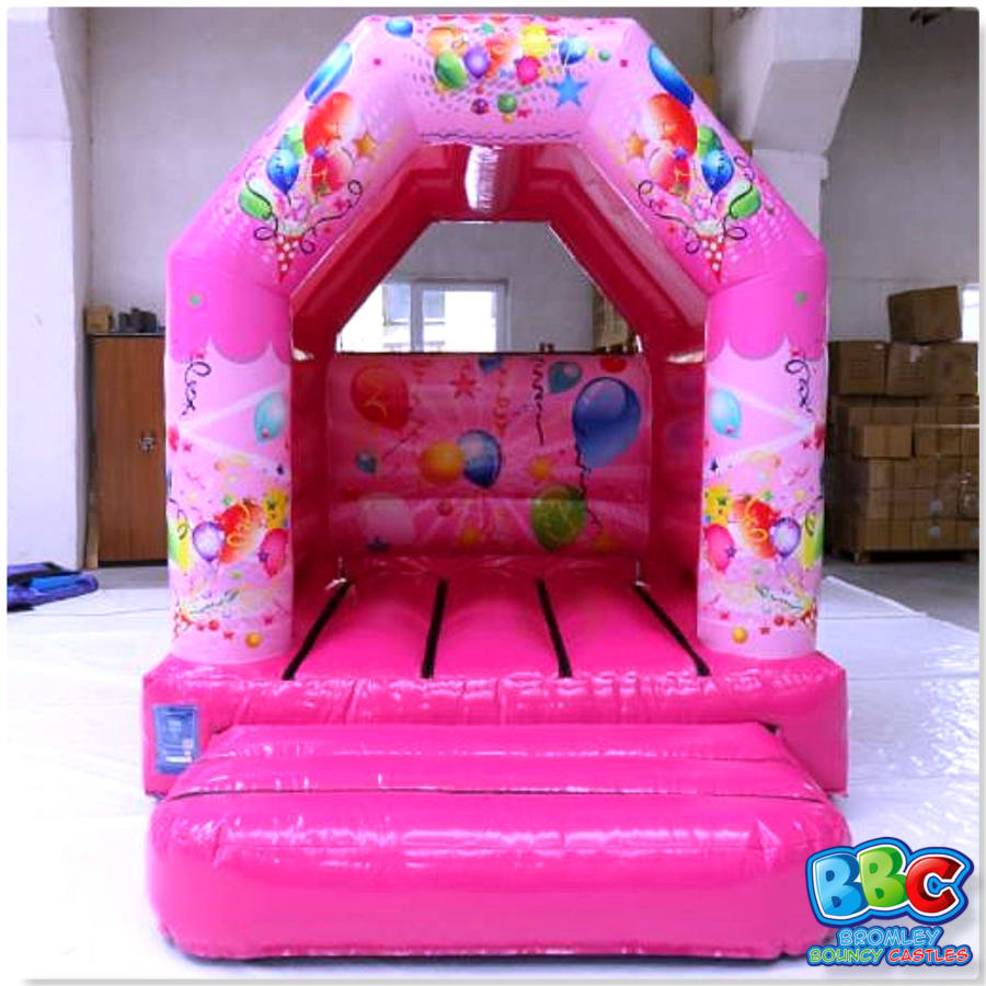 Introducing our Pink Party 'Mini' kids bouncy castle, perfect for narrow gardens and indoor venues.