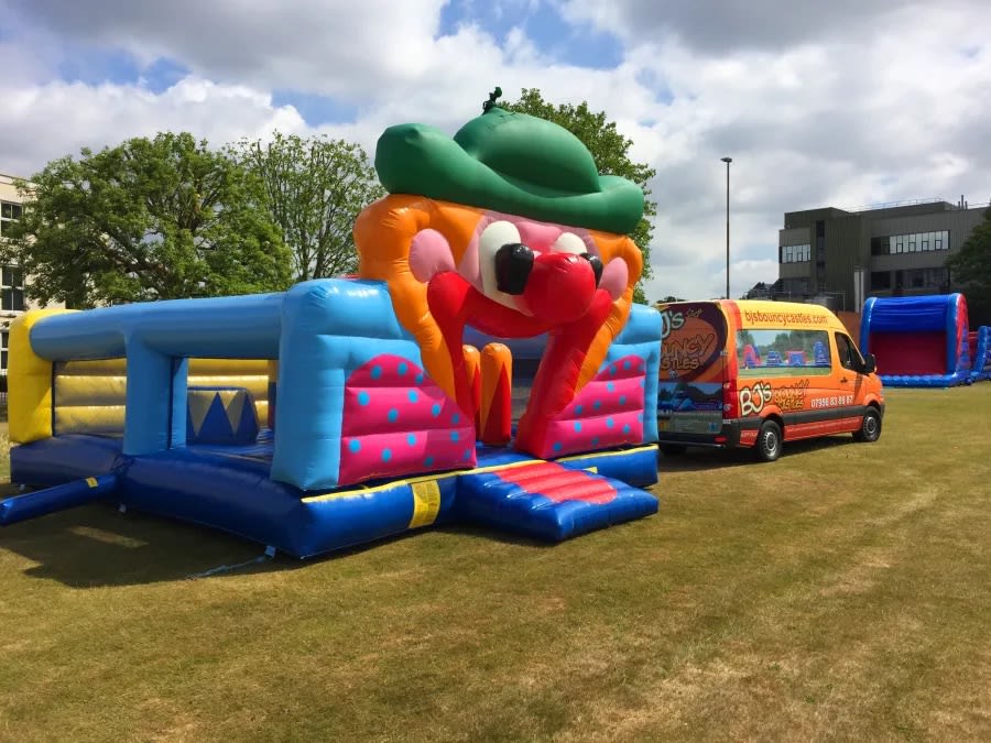 Introducing the Clown Activity Bouncy Castle, a vibrant and engaging option for anyone looking to enhance their home, fete, nursery, or fundraising event with a "wow factor" attraction. This ex-hire bouncy castle, constructed by Boing, is built to commercial standards, ensuring durability and safe fun for all users.