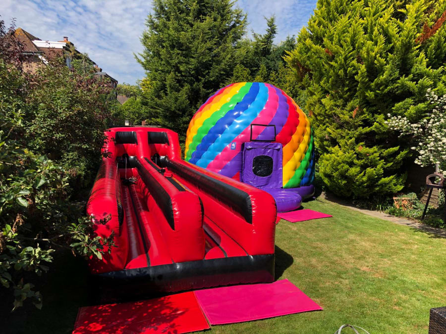 For your convenience, we provide an electric blower and an extension lead when setting up the equipment. The inflatable will be securely pegged into the grass (sandbags are provided for indoor bookings), and we'll supply a safety mat for added peace of mind.
