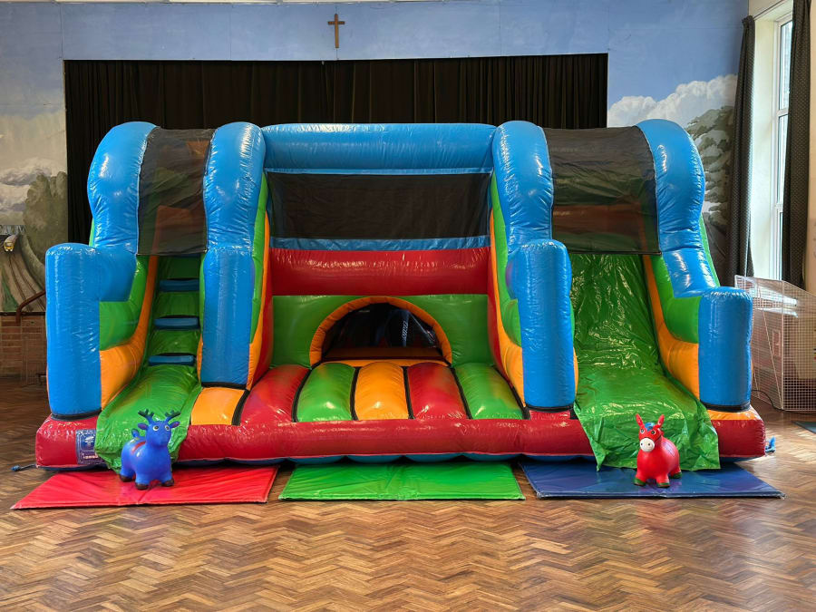 Please contact the hall direct to make a venue booking and then see our website for booking your inflatables, soft play, ball ponds, bounce & slide combo inflatable and more more