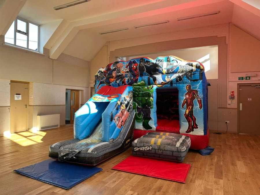 Please contact the hall direct to make a venue booking and then see our website for booking your inflatables, soft play, ball ponds, bounce & slide combo inflatable and more more.
