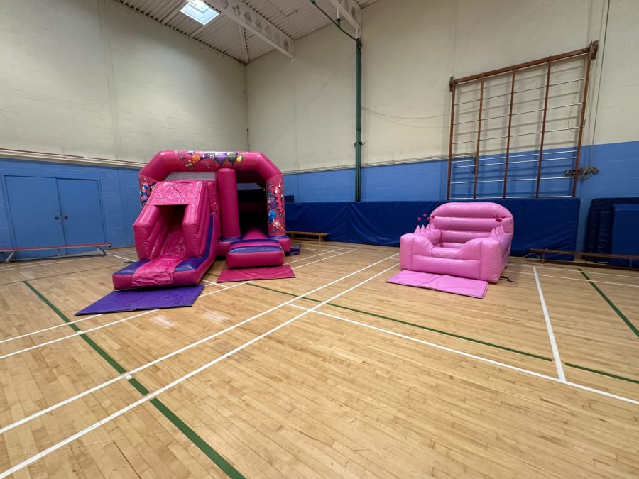 Hold 250 people and will fit all our choices of inflatables and bouncy castle, even our big assault courses!