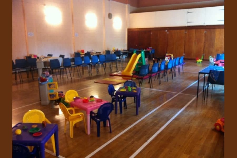 Large hall with garden. Variety of activity tables - painting and craft, puzzles, play-do, trains, cars, animals, kitchen, book corner, baby corner, sand play, slide, ride-on toys, rocking horses, dressing up. Song time at the end. Inclusive tea, coffee, squash and biscuits.