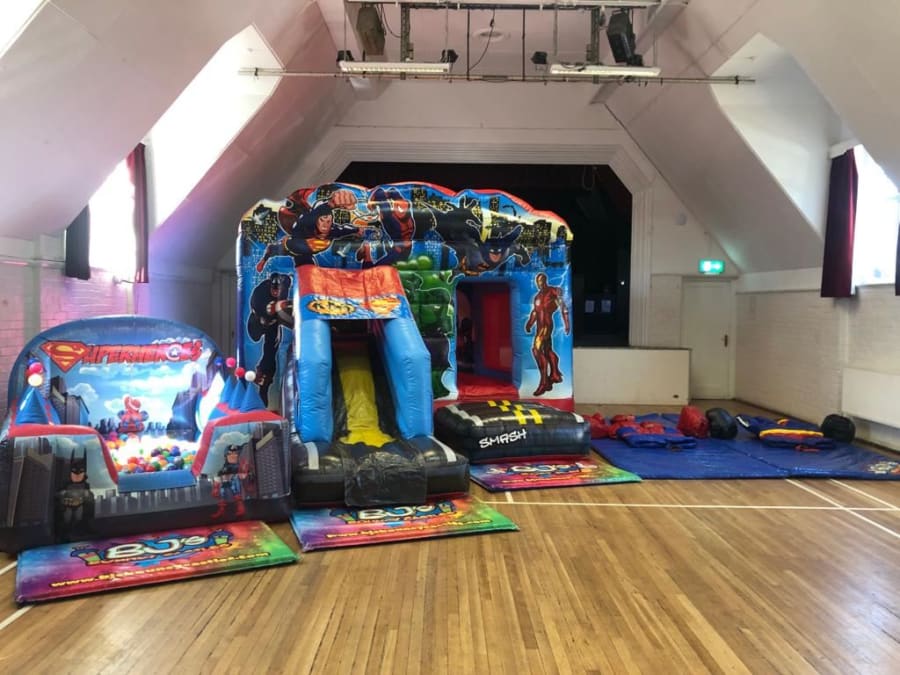 Please contact the hall direct to make a venue booking and then see our website for booking your inflatables, soft play, ball ponds, bounce & slide combo inflatable and more more.
