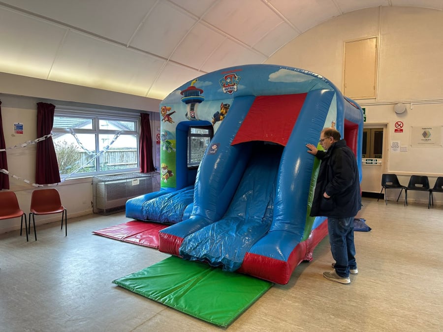 Please contact the hall direct to make a venue booking and then see our website for booking your inflatables, soft play, ball ponds, bounce & slide combo inflatable and more more