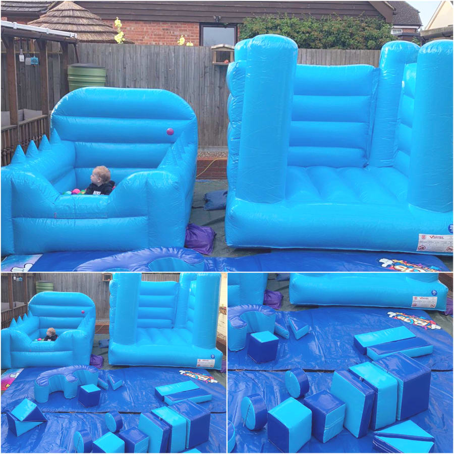 Blue/blue soft play package with an air juggler and a choice of micro castle