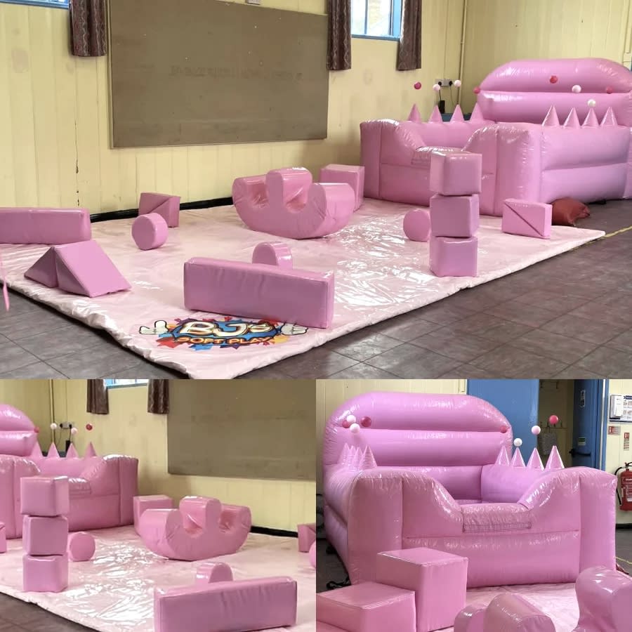 Pastel pink soft play package with pastel air juggler ball pond