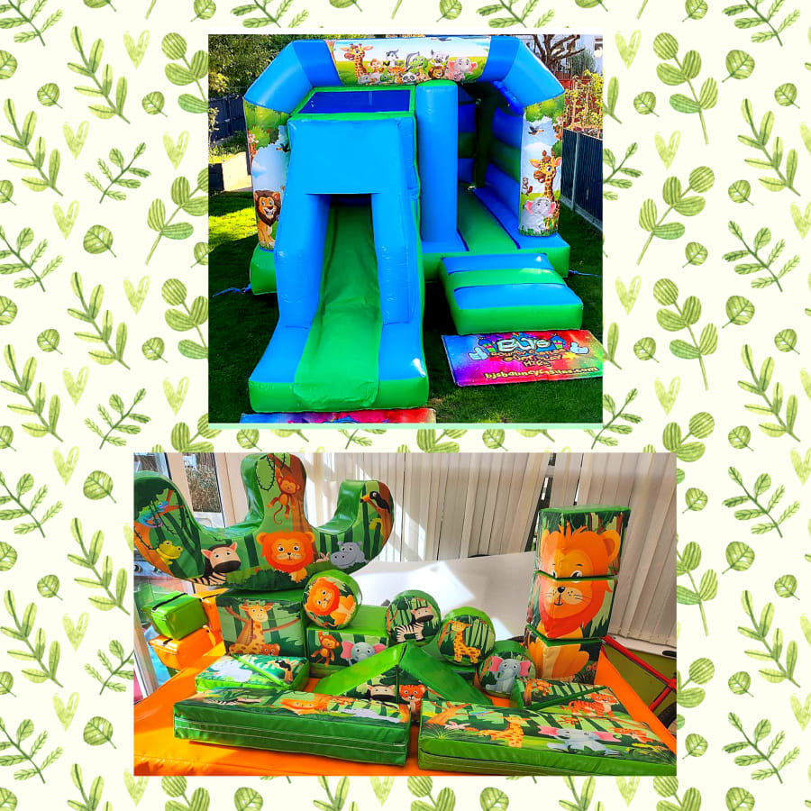 - 1 x Choice of bounce and slide OR tots slide with jungle artwork