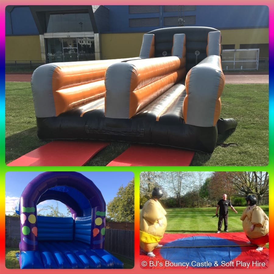 The double lane Bungee run, Family size bouncy castle and Sumo Wrestling/Super Hero Wrestling.