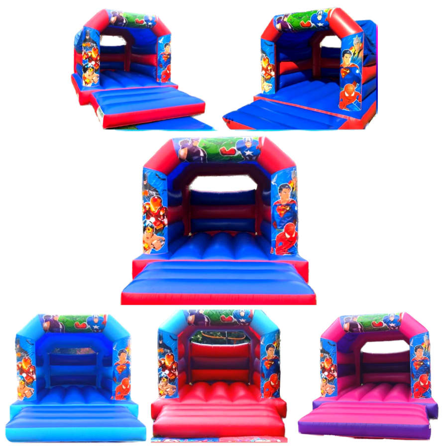 Available in a range of colour themes — including Red & Blue, Pink & Purple, Green & Blue, Navy & Red, and more — you can match your superhero castle to your party's colour scheme. Measuring 12ft wide by 15ft long and standing 9.5ft high, this bouncy castle fits comfortably into most gardens and venues, and it's suitable for children aged 10 and under. It can be pegged into grass outdoors or secured with sandbags for indoor events.