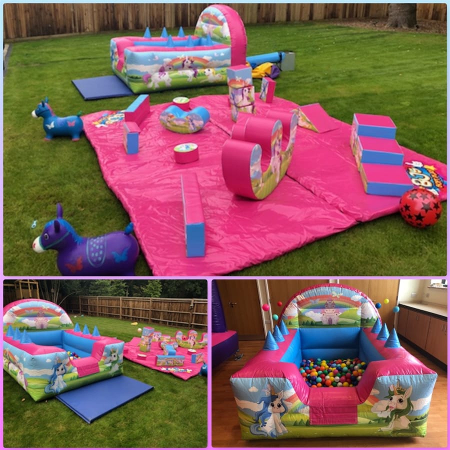 Unicorn Soft Play Package For Hire With Air Juggler Ball Pond